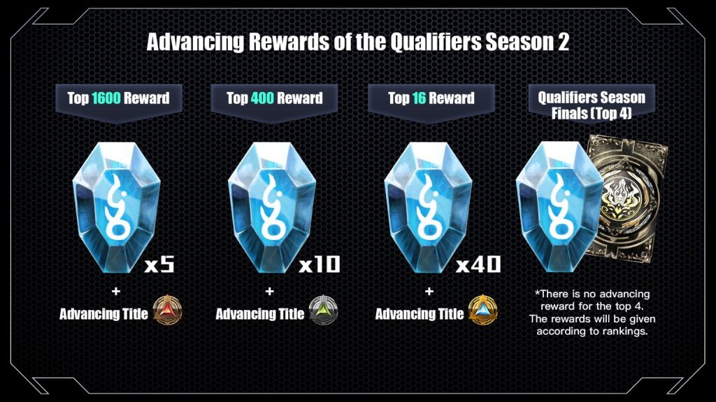 Winners of the Qualifiers Seasons will receive an All Max monster, a platinum title and a special visual effect at Ally Selection page, which allows all players to recognize your outstanding skills!
