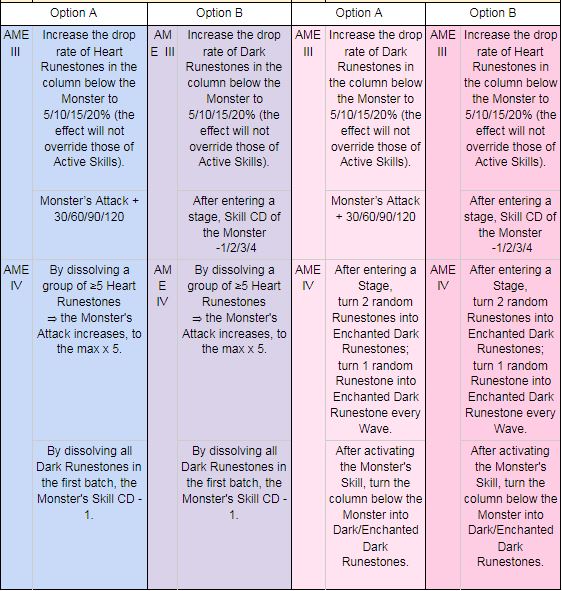 I. Turn the first Runestone in each column into Race Runestones of the Monster in that column.