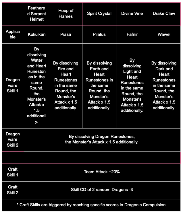 | * Craft Skills are triggered by reaching specific scores in Dragonic Compulsion |