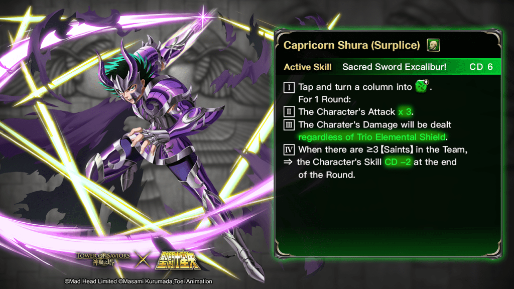 Tower of Saviors will hold “Cosmo! Evicting darkness in the realms!”, a new crossover event with the animated series, “Saint Seiya”, next week. The “Saint Seiya” characters will turn up in the realms and start a series of fierce battles. Moreover, “Capricorn Shura (Surplice)” will set up a Challenge stage while “Wyvern Rhadamanthys” will arrive as an Ultimate Lord.