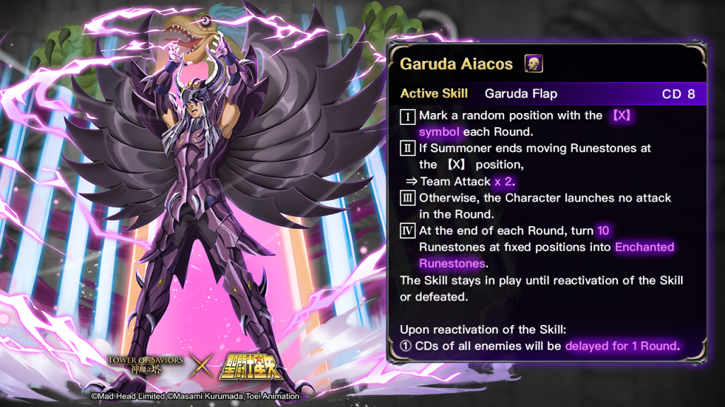 | Wyvern Rhadamanthys | Own Dual Max Garuda Aiacos | By dissolving the Character’s Character Runestones in the first batch, ⇒ the Character launches an extra attack as much as 50% of its Attack. |