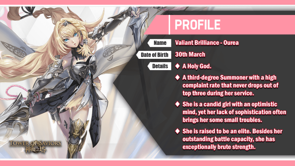 For every 20 draws in the “Era of Novelty” Seal, 6* character “Valiant Brilliance – Ourea” will be guaranteed.