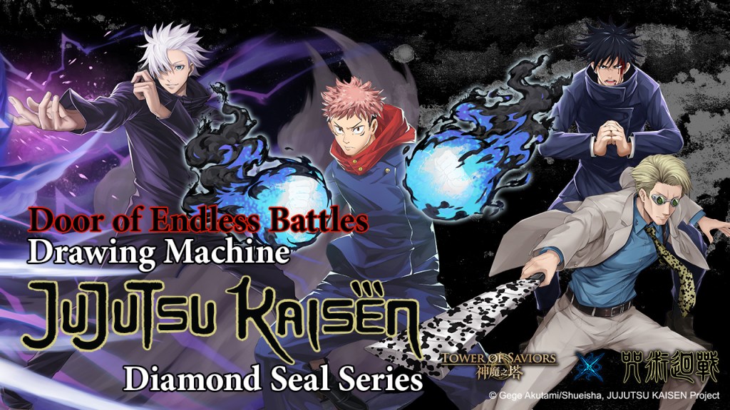 | ★ 4th Event: Diamond Seal Event “Door of Endless Battles” Time: 24 Apr (Mon) after maintenance to 21 May (Sun) During the event period, the “Door of Endless Battles” Drawing Machine will be open with a card pool including 8 characters from the “Jujutsu Kaisen” Diamond Seal series. The “Door of Endless Battles” Drawing Machine can be found in “Summon”. “Jujutsu Kaisen” Diamond Seal series include: 6 * “Satoru Gojo” 6 * “Yuji Itadori” 6 * “Megumi Fushiguro” 6 * “Kento Nanami” 6 * “Nobara Kugisaki” 6 * “Maki Zen’in” 6 * “Toge Inumaki” 6 * “Panda” Note: 1. 6* character “Satoru Gojo” will be guaranteed for every 35 draws in the “Door of Endless Battles” Drawing Machine. 2. “Glorystone” x 1 will be given as a reward at the first 35th draw. 3. Summoners can exchange “Glorystone” for rare characters “Yuji Itadori”, “Megumi Fushiguro” and “Kento Nanami” in “Shop”. 4. Summoners may exchange “Megumi Fushiguro” or “Kento Nanami” x1 and “Glorystone” x1 for the rare character “Yuji Itadori” x1; likewise, Summoners may exchange “Yuji Itadori” or “Kento Nanami” x1 and “Glorystone” x1 for “Megumi Fushiguro” x1, or redeem “Kento Nanami” x1 with “Yuji Itadori” or “Megumi Fushiguro” x1 and “Glorystone” x1. 5. By completing all Amelioration stages of a character of the mentioned Diamond Seal series for the first time, Summoners will be rewarded with that character’s exclusive Dragonware redemption coupon x1. The “Jujutsu Kaisen” series exclusive Dragonwares can also be redeemed with a certain number of crossover event Items in the “Jujutsu Sister-School Coalitional Contest” coming next week. 6.All relevant events & rewards of “Jujutsu Kaisen” are Hong Kong, Macau, Taiwan, Singapore, Malaysia and Thailand exclusive only. |