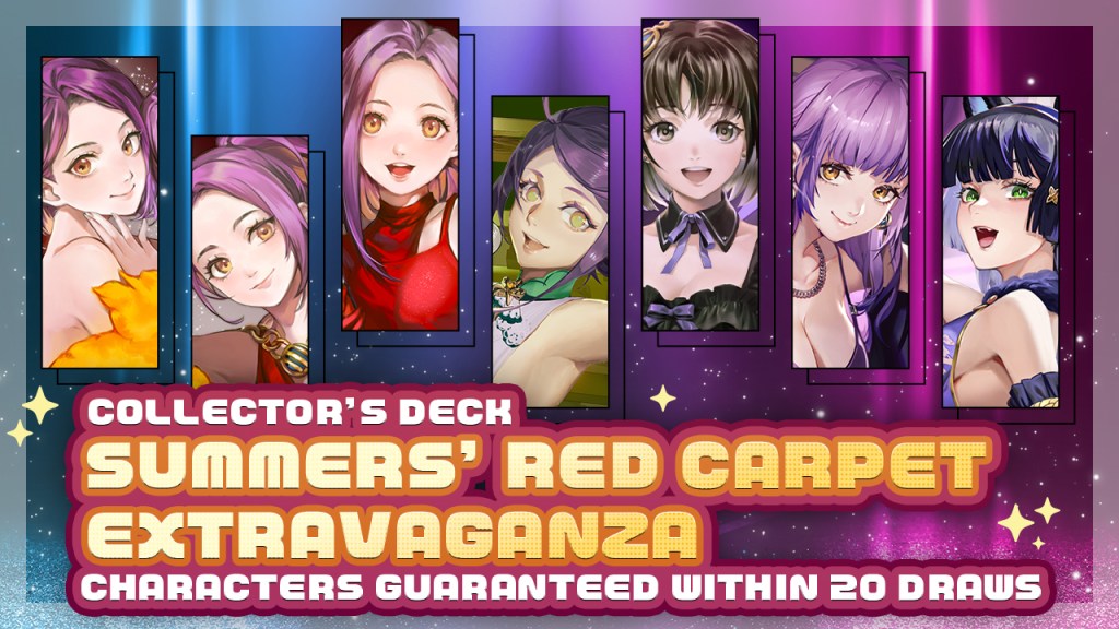 | ★ 4th Event: Diamond Seal Event “Summers’ Red Carpet Extravaganza” Time: 19 Jun (Mon) to 2 Jul (Sun) During the event period, a new “Collector’s Deck” Drawing Machine will be available with a card pool including 5 “I Love Summers” series characters and 15 rare Materials. Characters included: ◎ Everlasting Summers – Cherrie & Dorothy & Cherry ◎ Popping Chorus – Air ◎ Red Carpet Debut – Rinrinko ◎ Unremitting Flashlights – Maomao ◎ Dazzling Entrance – Zoe Materials included: – Harpy Knight – Madhead x 1 – Harpy x 3 – Baby Harpy Knight – Madhead x 3 – Soulstone x 5 (one for each Attribute) – Neon Crow x 1 – Silver Madhead x 2 * The Drawing Machine can be reset once a day. * All characters will be Lv.1 and Skill Lv.1. |