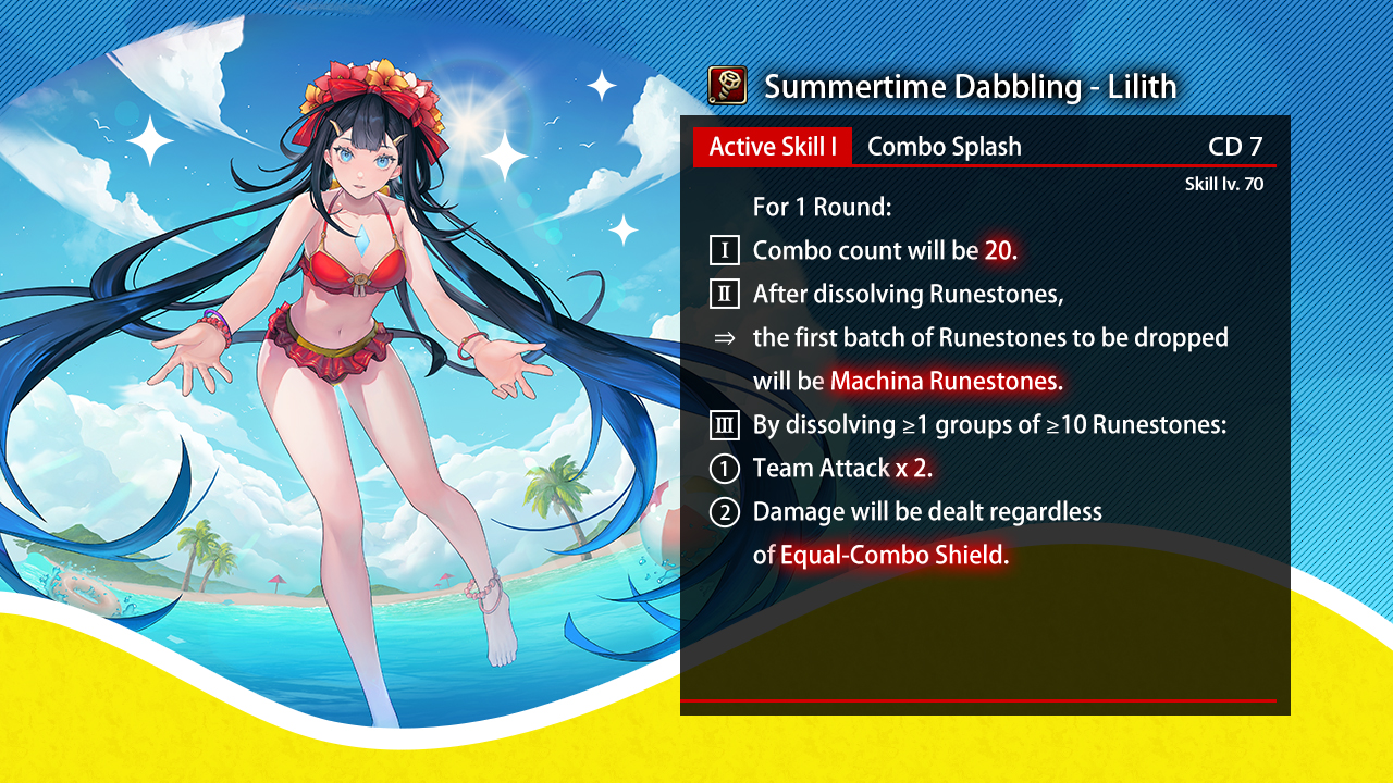 | The First Synthetic Soul – Lilith | Own Dual Max Summertime Dabbling – Lilith | By dissolving the Character’s Character Runestone in the first batch, ⇒ Combo count +1. |