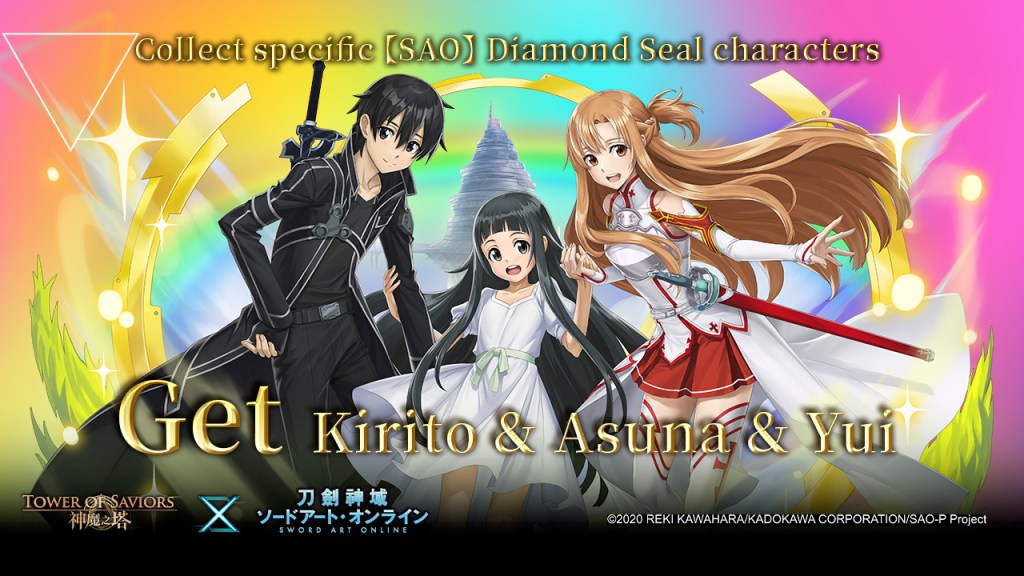 | ★ 11th Event: Trial Mission “The First Full Dive” Time: 7 Aug (Mon) after maintenance to 3 Sep (Sun) Full dive! Will you be the next savior in the world of game? * There will be default Teams featuring the crossover Diamond Seal series characters for Summoners to try their abilities in this stage. * Item “Cor” x200 will be given to Summoners upon stage clearance. * All relevant events & rewards of “Sword Art Online” are exclusive to Hong Kong, Macau, Taiwan, Singapore, Malaysia and Thailand |