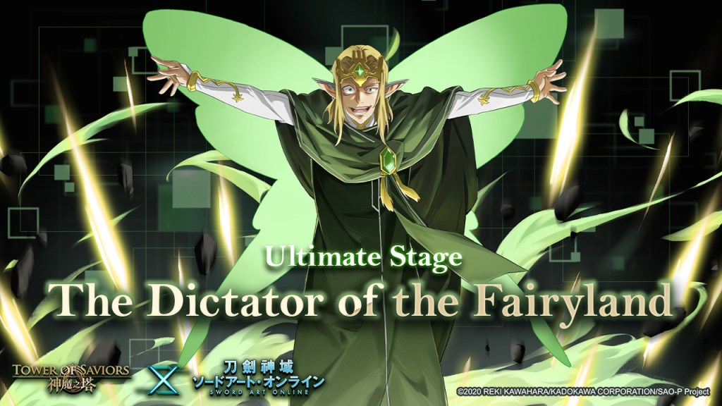 | ★ 4th Event: New Ultimate Stage “The Dictator of the Fairyland” Time: 15 Aug (Tue) 22:00 to 3 Sep (Sun) 23:59 The fairy king is actually a criminal mastermind?! There will be 2 floors in the stage: ※ “The Dictator of the Fairyland Lv.1” – There will be a low chance of getting the Boss Card character. – Each floor entrance requires 40pt Stamina. – Item “Yrd” x160 will be given upon each floor clearance. ※ “The Dictator of the Fairyland Lv.2” – There will be a 100% guaranteed drop of the Boss Card character. – Each floor entrance requires 50pt Stamina. – Item “Yrd” x250 will be given upon each floor clearance. “The Dictator of the Fairyland Lv.2” Floor Clearance Rewards: ※ 2 times: Item “Yrd” x 400 ※ 3 times: “Fairy King Oberon” (Skill Lv. 7) x 1 ※ 4 times: Item “Yrd” x 400 ※ 6 times: Crossover personal record background (Asuna) x 1 * Challenge the “The Dictator of the Fairyland Lv.2” 3-star achievement to get “Earth Orb” x50. * All relevant events & rewards of “Sword Art Online” are exclusive to Hong Kong, Macau, Taiwan, Singapore, Malaysia and Thailand. |