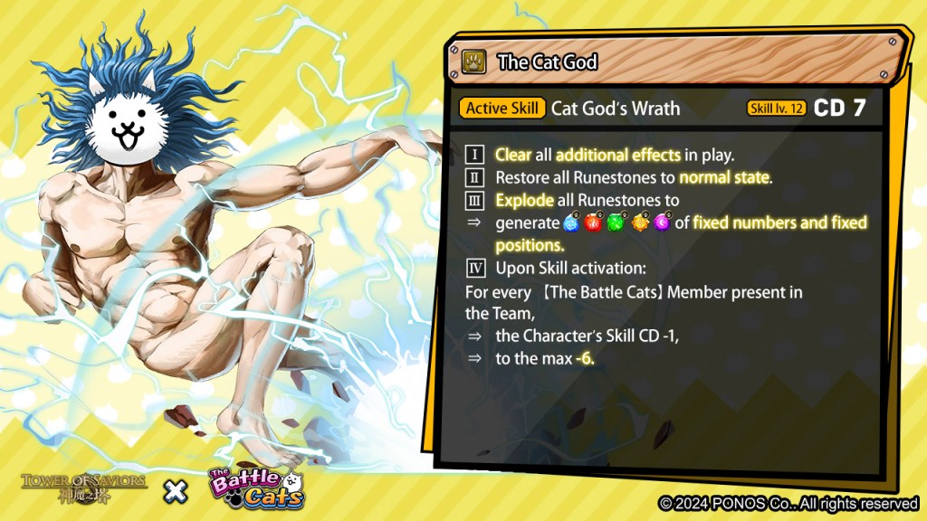 | Both the Leader and Ally are Beasts with “The Cat God” in the Team. | ◆ “The Cat God”: ⓵ Skill CD -7 after entering a Stage. ⓶ HP, Attack & Recovery basic value x 2. |