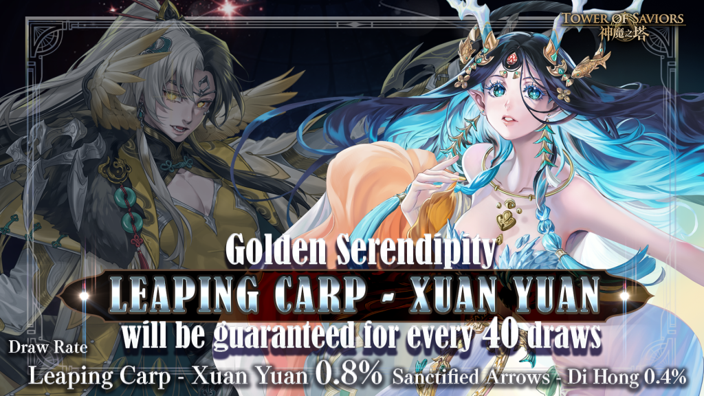 “Sanctified Arrows – Di Hong”, a beast that belongs to the Tenshivu clan, and “Leaping Carp – Xuan Yuan”, a golden carp that acquires sentience and begins her journey of cultivation under Di Hong’s guidance, will make their debut in the realms on 28 Jan (Tue) at noon! “Sanctified Arrows – Di Hong” and “Leaping Carp – Xuan Yuan” are extremely rare 7* characters that can be obtained by summoning Seals in the “Martial Elegance” and the “Golden Serendipity” Diamond Drawing Machines during the event period.