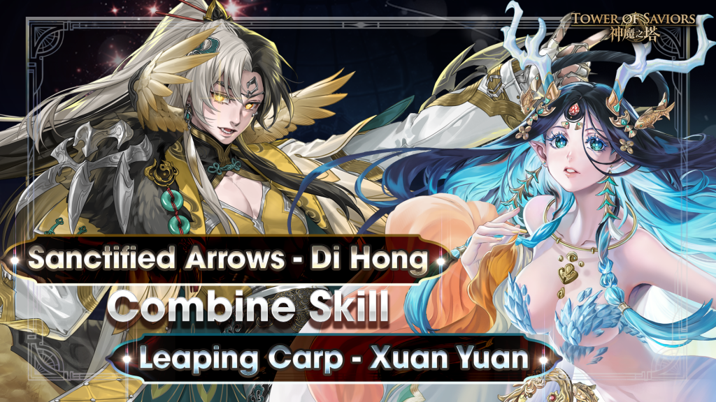 | There are “Leaping Carp – Xuan Yuan” and “Sanctified Arrows – Di Hong” in the Team. (The characters must reach Lv. 50 or above). | I. If the Leader is “Sanctified Arrows – Di Hong”: ⇒ Ironclad Resistance +12. II. Deal 1 non-Attributive Damage of 1.2 billion to all enemies regardless of Defense and Enchanted Runestone Shield. III. If both the Leader and Ally are “Sanctified Arrows – Di Hong” or “Leaping Carp – Xuan Yuan”: ⇒ Deal a non-Attributive Damage of 120 trillion. (This Damage will be dealt regardless of Boss Skills and attack bonus of the Team.) IV. By tapping a Runestone on the Magic Circle of Elements 6 times: ⇒ Remove all Runestones to ⇒ generate Enchanted Runestones (Beast and Dragon) of the types tapped of fixed numbers and fixed positions. V. All Members: ⇒ Remove the countdown to Deadly Dormancy. VI. All Members: ⇒ Enter/Stay in a hyper state for 12 Rounds. For 1 Round: VII. “Sanctified Arrows – Di Hong” and “Leaping Carp – Xuan Yuan”: ⇒ Attack x 12.VIII. Beasts, Dragons and Gods: ⇒ Damage will be dealt regardless of ⓵ Cross-shaped Shield ⓶ L-shaped Shield ⓷ T-shaped Shield ⓸ Number Attack Shield ⓹ Enemies’ Specific Damage-reducing Resistance IX. Ex. Combo and Combo count +120. |