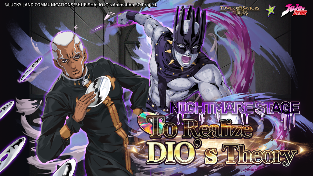 | ★ 4th Event: Nightmare Stage “A Dream to Achieve Heaven” Time: 12 May (Mon) 22:00 to 18 May (Sun) 23:59 The man who inherits DIO’s will never gives up on pursuing Heaven! ※ Round restriction: Summoners must clear the stage within 30 rounds. ※ Wave skill: A certain number of positions will be changed into Defensive Area each Round. A random Member will be locked each Round. The locked Member’s Character Runestone must be placed in a Defensive Area at the end of Runestone movement. Otherwise, that Member becomes a DISC at the end of the Round. There will be a special stage that includes 4 Rehearsal floors (either Ultimate Rehearsal or Nightmare Rehearsal). 1 Diamond will be given for the first clearance of all floors in the special stage. The overall structure and setting of the “A Dream to Achieve Heaven – Rehearsal” stage will be the same as the Nightmare Stage, but with a relatively lower difficulty and a lower drop chance of the Boss character. Rewards for each stage clearance: ※ “Father Pucchi & Pale Snake” x1 ※ Skill Level-up Material “Midnight Silhouette – Sphinx” x1 ※ JoJo Coin x1,400 * Challenge the 3-star achievement to get Dark Orb x100. * Complete the stage once to get Harpy x1, Heavy Gear Knight x1, and Golden Mothdrake x2. * Complete the stage 2 times to get the crossover wallpaper (featuring Jolyne Cujoh and Father Pucchi) x1. * Complete the stage 3 times to get “Father Pucchi & Pale Snake” (Skill Lv. 8) x1. * Complete the stage 5 times to get the crossover Medal “Star Platinum – The World Disc” x1. * Complete the stage 7 times to get the crossover Dragonware “Pale Snake’s Discs Pattern” x1. * When “Midnight Silhouette – Sphinx” is used as a Level-up Material for a character of the specific crossover series, the character’s skill level will increase by 600 battle rounds. * All relevant events & rewards of “JoJo’s Bizarre Adventure” are exclusive to Hong Kong, Macau, Taiwan, Singapore, Malaysia and Thailand. |