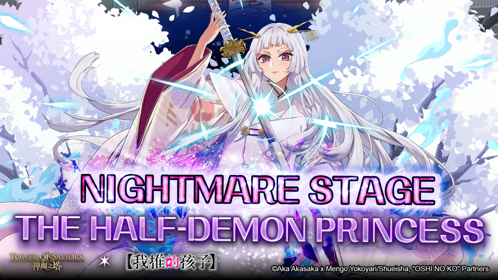 | ★ 3rd Event: New Nightmare Stage “The Half-Demon Princess” Time: 30 Jun (Mon) 22:00 to 6 Jul (Sun) 23:59 The prodigious actress gets all the spotlight on stage! ※Round restriction: 30 Rounds During the event, there will be a special stage that includes 3 Rehearsal floors (either Ultimate Rehearsal or Nightmare Rehearsal). 1 Diamond will be given for the first clearance of all floors in the special stage. “The Half-Demon Princess Rehearsal” floor will share the same overall structure and setting with the Nightmare Stage, but it will have a relatively lower difficulty and a lower drop chance of the Boss character. Rewards for each stage clearance: ※ “Princess Saya (Akane Kurokawa)” x 1 ※ Skill Level-up Material “Miyako Saitou” x 1 ※ Lightstick x 1,400 * Challenge the 3-star achievement to get Water Orb x100. * Complete the stage once to get Harpy x1, Heavy Gear Knight x1, and Golden Mothdrake x2. * Complete the stage 3 times to get “Princess Saya (Akane Kurokawa)” (Skill Lv. 8) x1. * Complete the stage 4 times to get the crossover wallpaper (featuring “Princess Saya (Akane Kurokawa)” and “Touki (Aqua)”) x1. * Complete the stage 5 times to get the crossover medal ‘Princess Saya (Akane Kurokawa)’ x1. * When “Miyako Saitou” is used as a Level-up Material, the accumulated Battle Rounds of the specific crossover characters will increase by 600! * All relevant events & rewards of “【OSHI NO KO】” are exclusive to Hong Kong, Macau, Taiwan, Singapore, Malaysia and Thailand. |