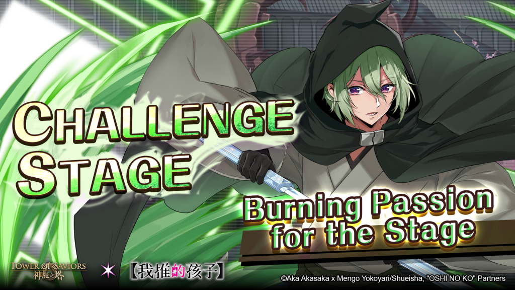 | ★ 6th Event: New Challenge Mission “Burning Passion for the Stage” Time: 30 Jun (Mon) to 6 Jul (Sun) The famous 2.5D stage play actor takes great pride in his acting skills! Rewards for each stage clearance: ※ “Monme (Sakuya Kamoshida)” x1 ※ Lightstick x480 Stage clearance rewards: ※ 5 times – Black Keys x40 ※ 10 times – Summoner’s Secret Base Furniture “New B-KOMACHI Poster” x1 * All relevant events & rewards of “【OSHI NO KO】” are exclusive to Hong Kong, Macau, Taiwan, Singapore, Malaysia and Thailand. |