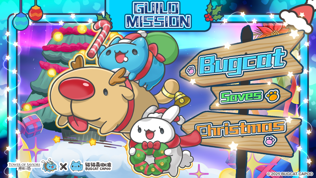 | ★ 6th Event: Guild Mission “Bugcat Saves Christmas” Time: 22 Dec (Mon) to 28 Dec (Sun) Capoo is asking for a hand! Join your Guild members to save Christmas! All Guild members can get fruitful rewards by completing the Guild missions! Collect all items in the Showroom and get the exclusive title “Capoo’s Blessing”. Personal Score Awards: ※ 200 Scores – Spiritual Eye x1 ※ 400 Scores – New character “Capoo & Tutu & Dogdog” (Skill Lv. 1) x1 ※ 650 Scores – Harpy x1 ※ 1,000 Scores – Returning characters “Celebratory Countdown – King Slime” (Skill Lv. 10), “Absolutist of Regulation – Randena” (Skill Lv. 10), the crossover Summoner’s Base Furniture “Madhead and Capoo Poster” Additional Personal Score Awards: ※ 1,400 Scores – New character “Capoo & Tutu & Dogdog” (Skill Lv. 1) x1 ※ 1,650 Scores – New character “Capoo & Tutu & Dogdog” (Skill Lv. 1) x1 ※ 2,000 Scores – New character “Capoo & Tutu & Dogdog” (Skill Lv. 1) x1 Guild Score Awards: ※ Guild Score ≥2,000 & Personal Score ≥40 – Mini Madhead x1 ※ Guild Score ≥7,000 & Personal Score ≥80 – Baby Harpy Knight – Madhead x1 ※ Guild Score ≥12,500 & Personal Score ≥160 – Heavy Gear Knight x1 ※ Guild Score ≥20,000 & Personal Score ≥200 – New character “Capoo & Tutu & Dogdog” (Skill Lv. MAX) x1 & the exclusive wallpaper featuring “Capoo & Tutu & Dogdog” * The Top-100 Guild Leaderboard applies to this event. * The chance of encountering raiding characters and rare items will be boosted during the last 3 days of the event (i.e., 26 Dec 00:00 to 28 Dec 23:59) when challenging stages. * All relevant events & rewards of “Bugcat Capoo” are exclusive to Hong Kong, Macau, Taiwan, Singapore, Malaysia and Thailand. |