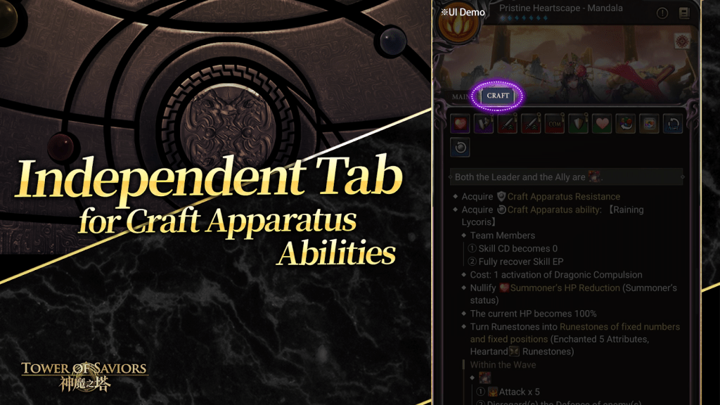 Starting with the latest version, Craft Apparatus Abilities will be displayed separately within the Team Skill tab for easier reference.