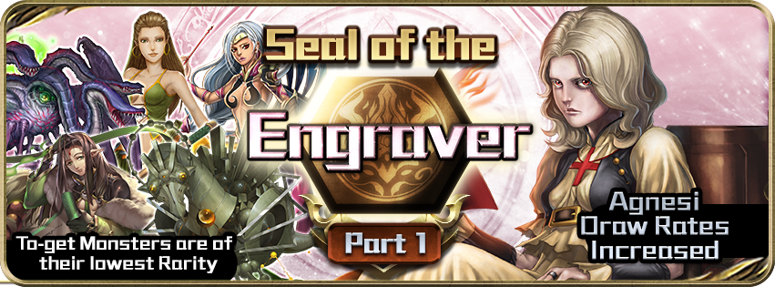 Seal of the Engraver – Part 1 – Increased chance to get Fire cards Time: 9 July (Mon) 00:00 – 15 July (Sun) 23:59 Even greater chance for: 5★ Agnesi