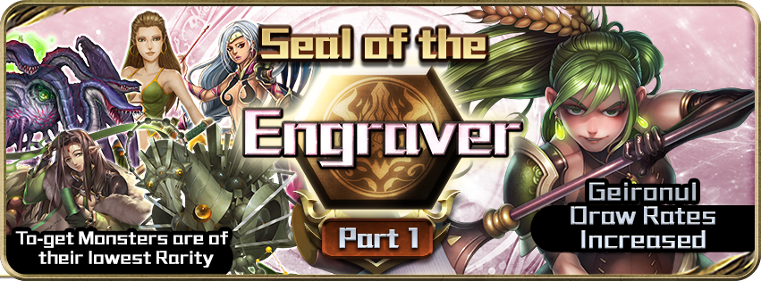 Seal of the Engraver – Part 1 – Increased chance to get Earth cards Time: 16 July (Mon) 00:00 – 22 July (Sun) 23:59 Even greater chance for: 5★ Geironul