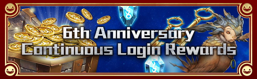 Week Date Continuous Login Rewards 1st Week 12/3/2018 (Mon) Diamond x 1 Baby Harpy x 1 12/4/2018 (Tue) Component “Silver Pattern” x 1 Black Key x 10 12/5/2018 (Wed) Stamina … Continue Reading 6th Anniversary Continuous Login Rewards