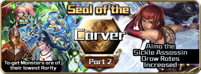 Seal of the Carver – Part 2 – Increased chance to get Dark cards Time: 3 December (Mon) 00:00 – 9 December (Sun) 23:59 Even greater chance for: 5★ Alma the Sickle … Continue Reading Seal of the Carver – Part 2 – Increased chance to get Dark cards