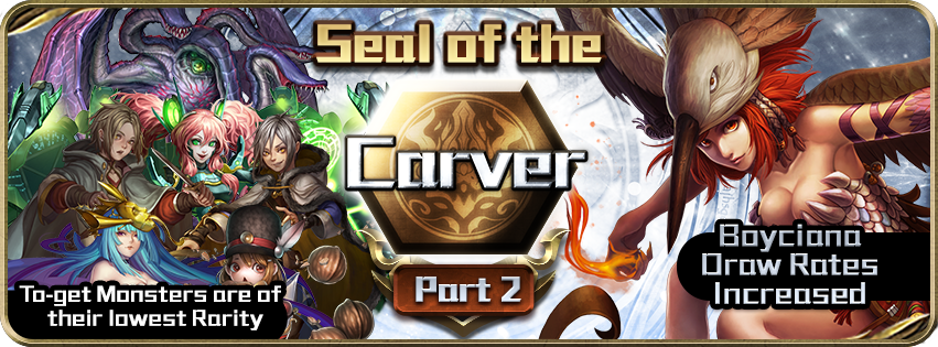 Seal of the Carver – Part 2 – Increased chance to get Fire cards Time: June 4 00:00 – June 10 23:59 Even greater chance for: 5★ Boyciana